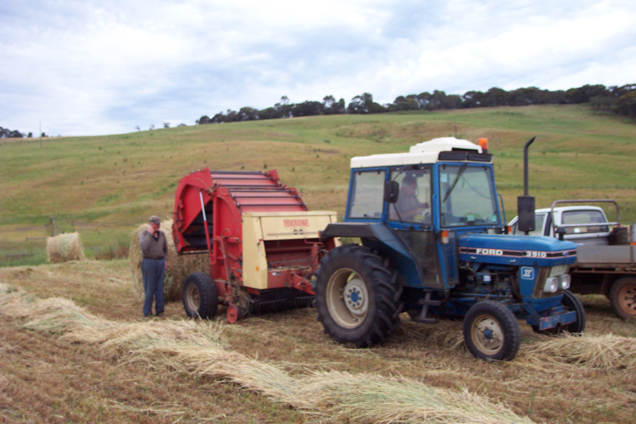 Of course the big advantage of the round bales now is that it cuts down on the number of the workforce. Carting them in and where you had perhaps 15 perhaps 20 of the smaller bales, well that now is all put into one big roll. And as far as carting them in is concerned. Well if you’ve got the right equipment and the right sized tractor, it’s only a matter of carting them along the fenceline or suitable areas where you feed them out from. It means that you haven’t got to have haysheds. They stand up well to the weather. I know some people who have had them here for three years or more and when they’re gone to use them the quality of the hay is still very good. There’s also the big squares too. They seem to fit on the semis a lot better with the cartage and neater loads. You see very few small squares now around mainly because of the costs of carting them in and then having to cart them out. I’d say it’s definitely an improvement as far as the overall cost of harvesting.
