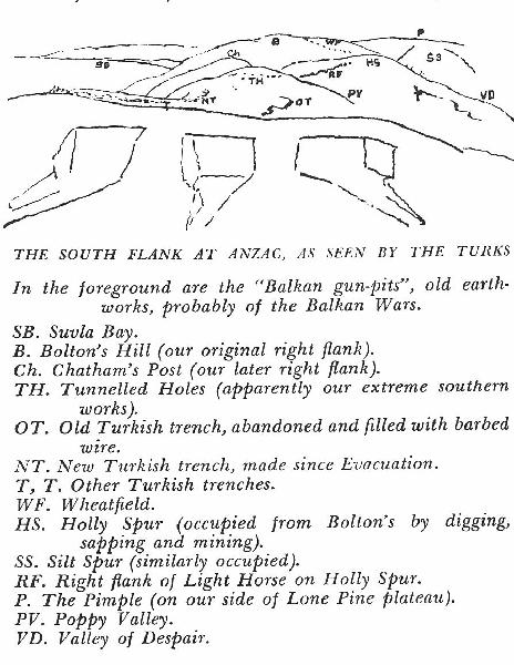 line. The drawing looking north at ANZAC from the Turkish lines was