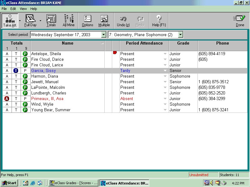 absentees are done on the computer and submitted to the office. The
