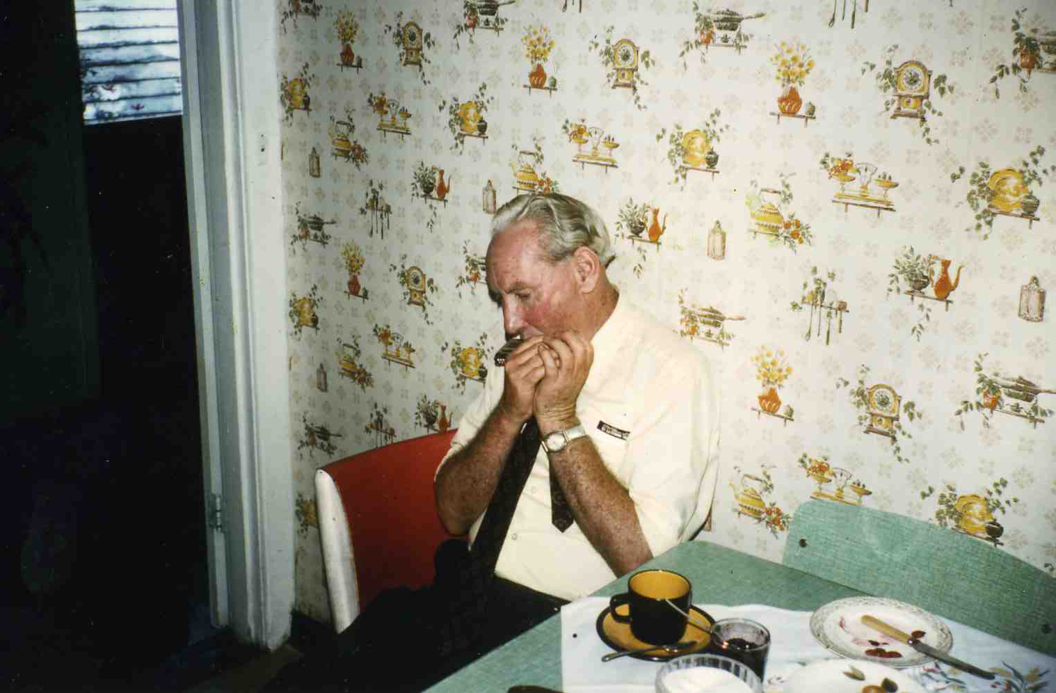 (Dad playing the mouthorgan after tea at the kitchen table)