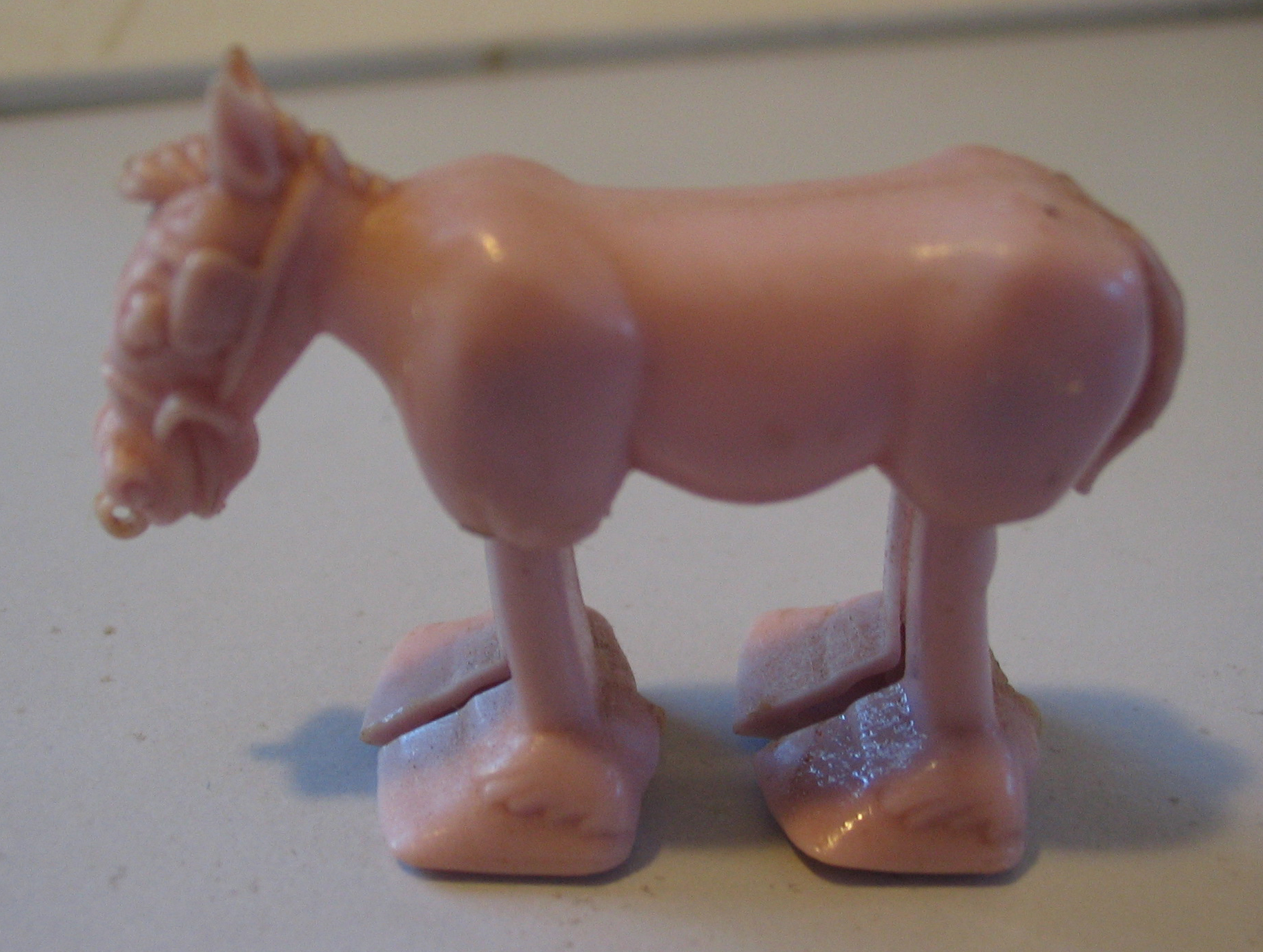 Plastic horse which walked along the table tied to a piece of string. Found in the Weeties packets at Ballies. He used to collect them for me |