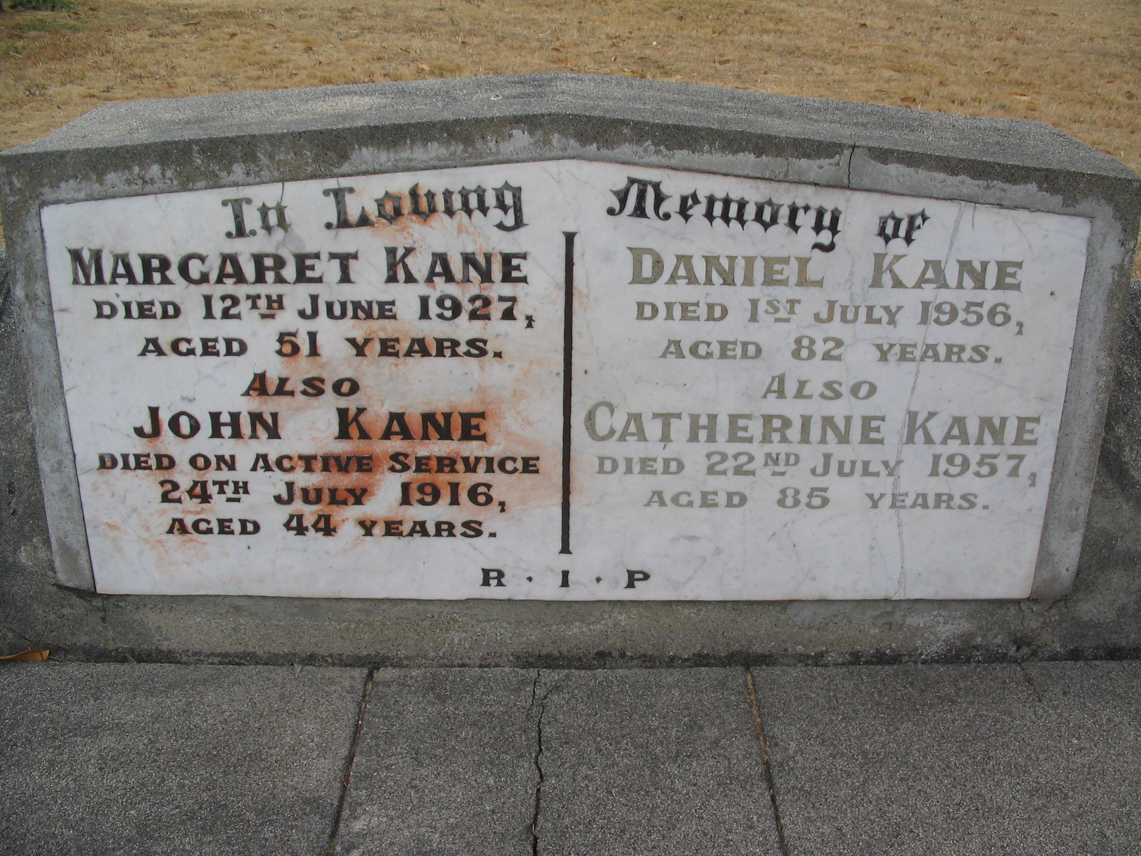 | KANE | JOHN | Jack | Aug-15 | 1871 | Jul-30 | 1915 | 43 | Gallipoli Turkey | ||||