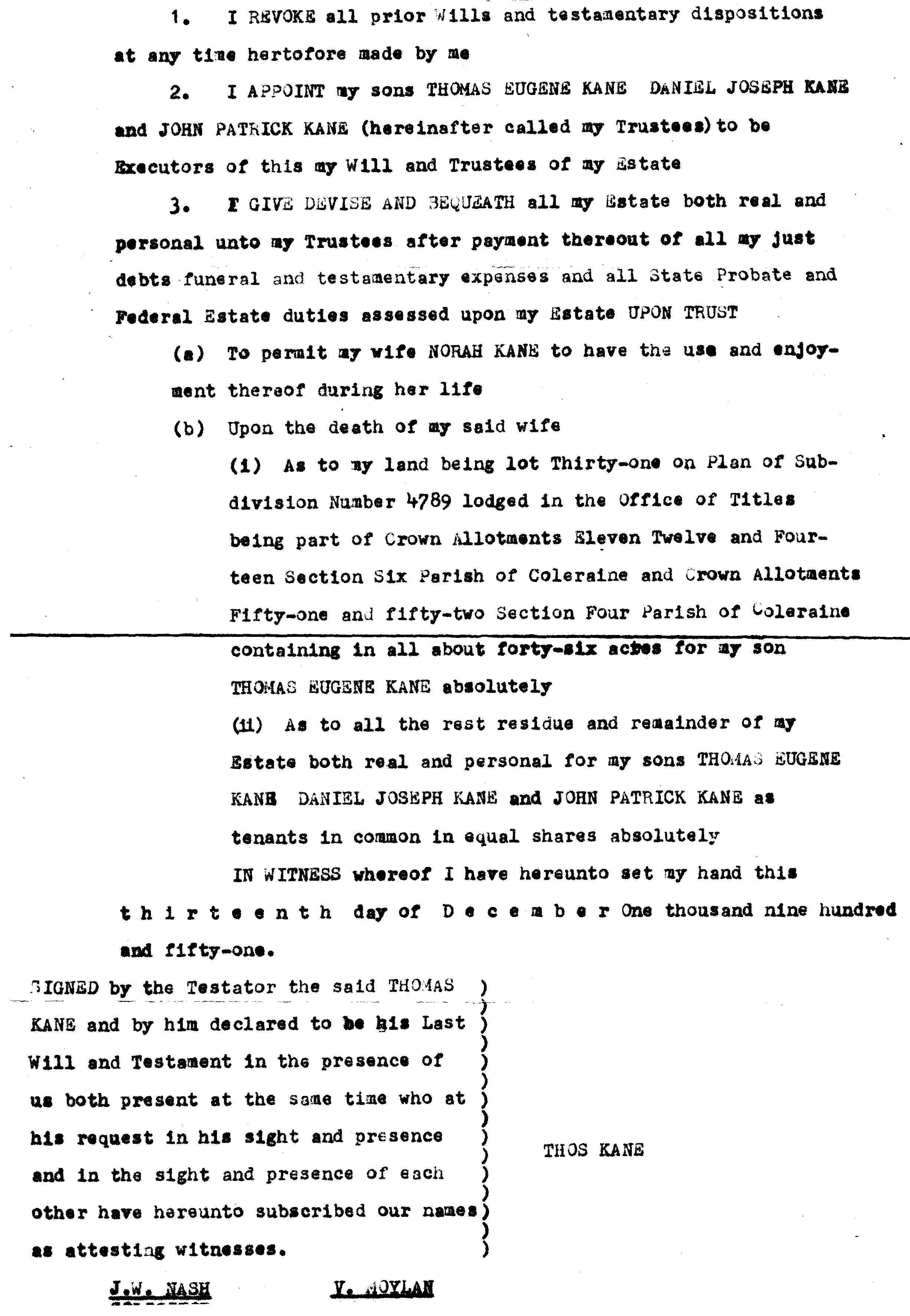 | KANE | THOMAS | Aug-30 | 1879 | Feb 26 | 1916 | Jun-19 | 1967 | 87 | Coleraine Victoria | |||
