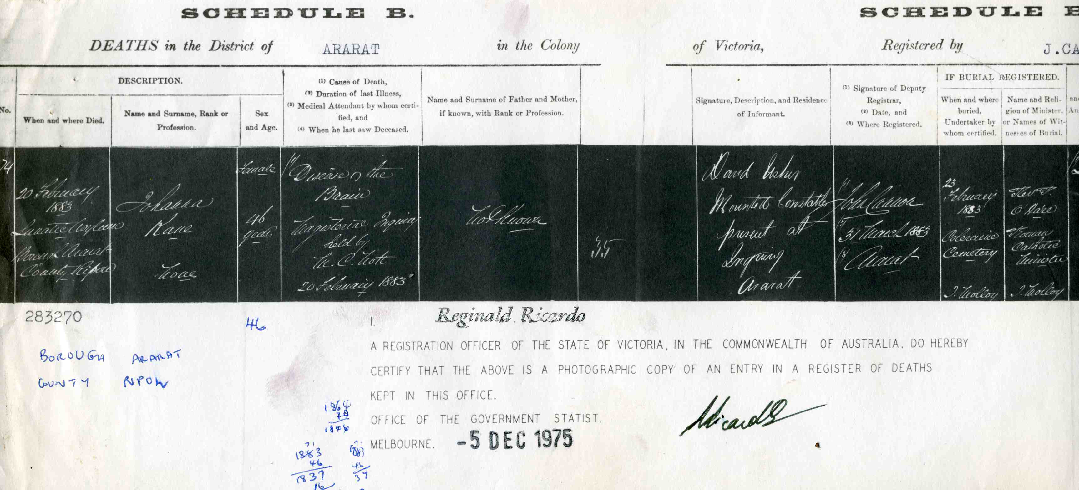 1870 | Feb-20 | 1883 | 46 | Coleraine Victoria | |||