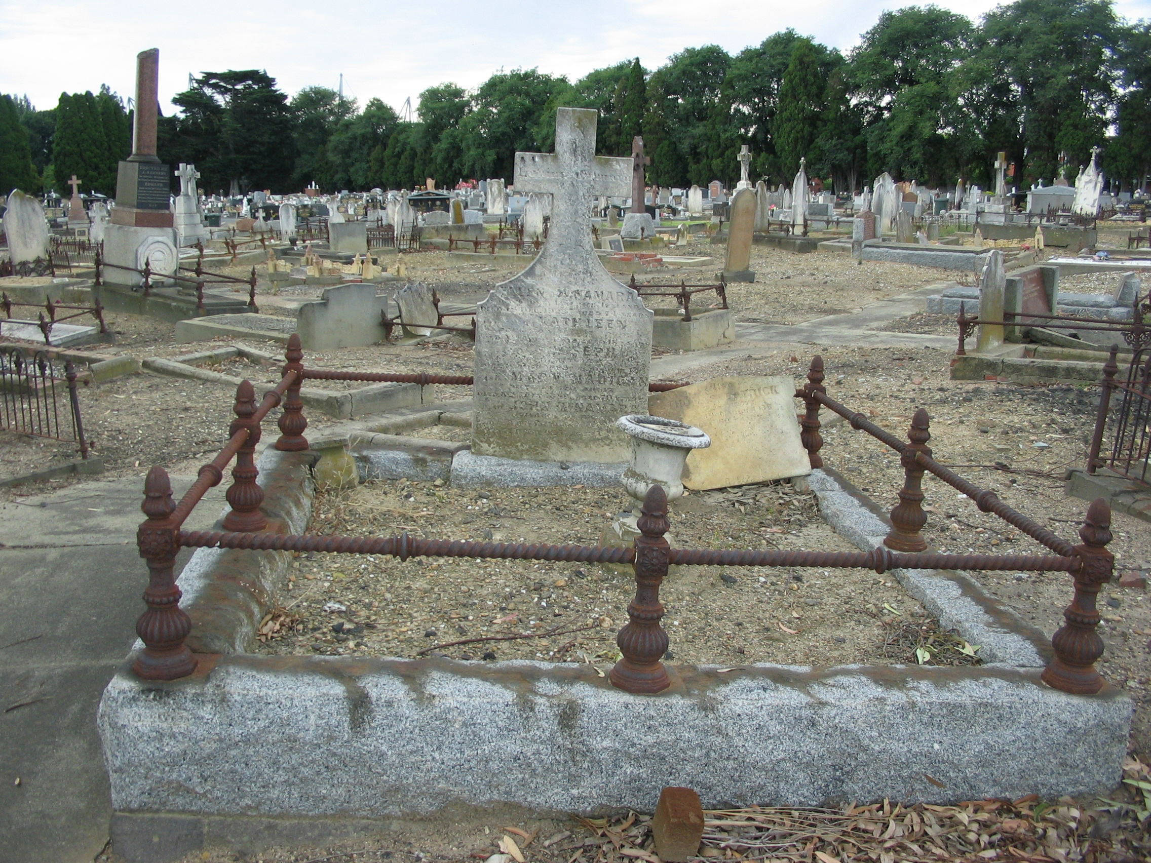 ELLEN McNAMARRA'S GRAVE IN MELBOURNE GENERAL CEMETERY SISTER OF OUR GREAT GRANDFATHER DANIEL KANE. |