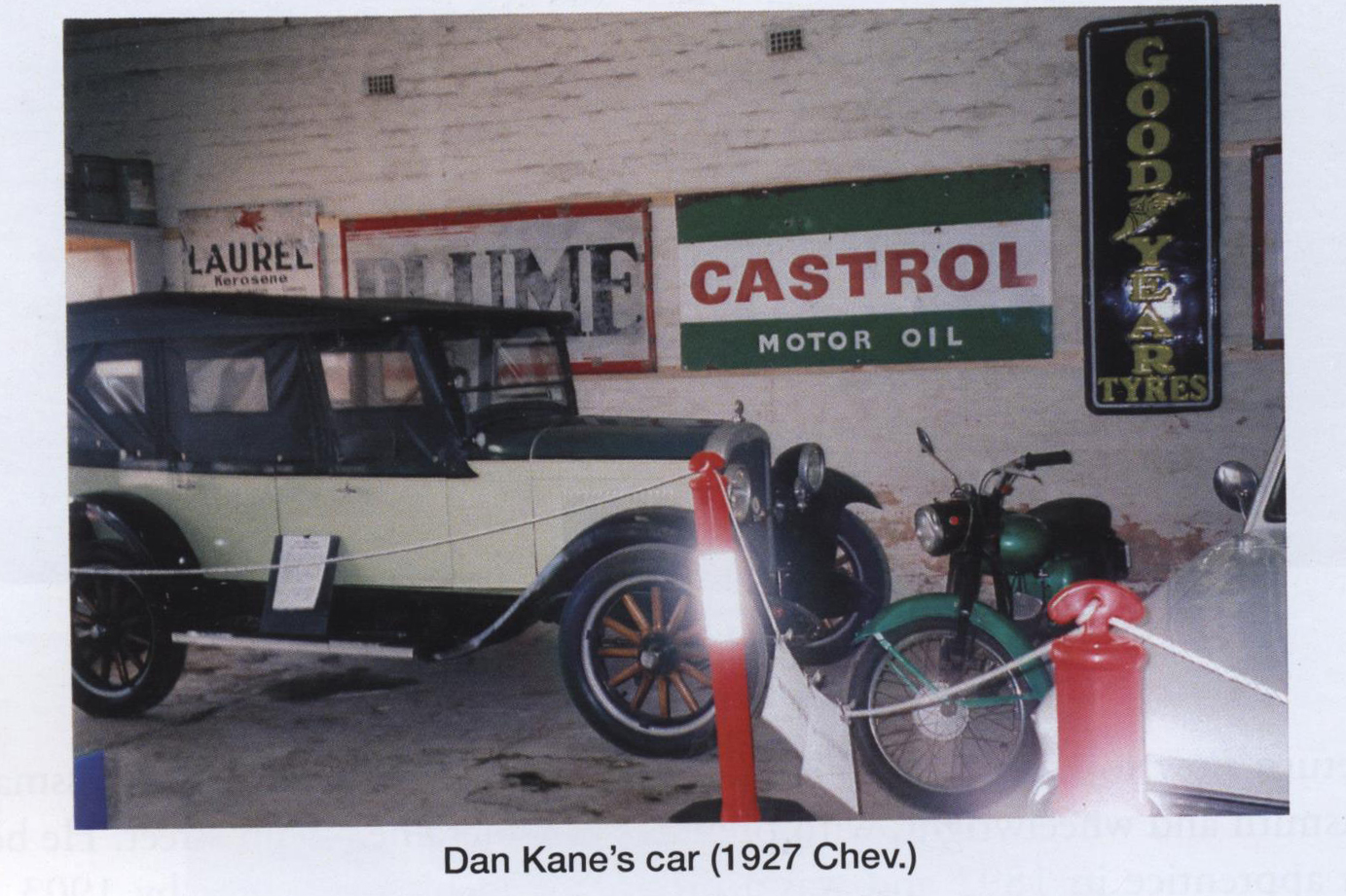 Dan had an old Chev car. He took Ballie, Grandpa Kane, Dolly and Grandma Eveston to Melbourne. He was a shocking driver. He had a prang in Melbourne - they were visiting Aunt Lizzie in North Carlton | |
