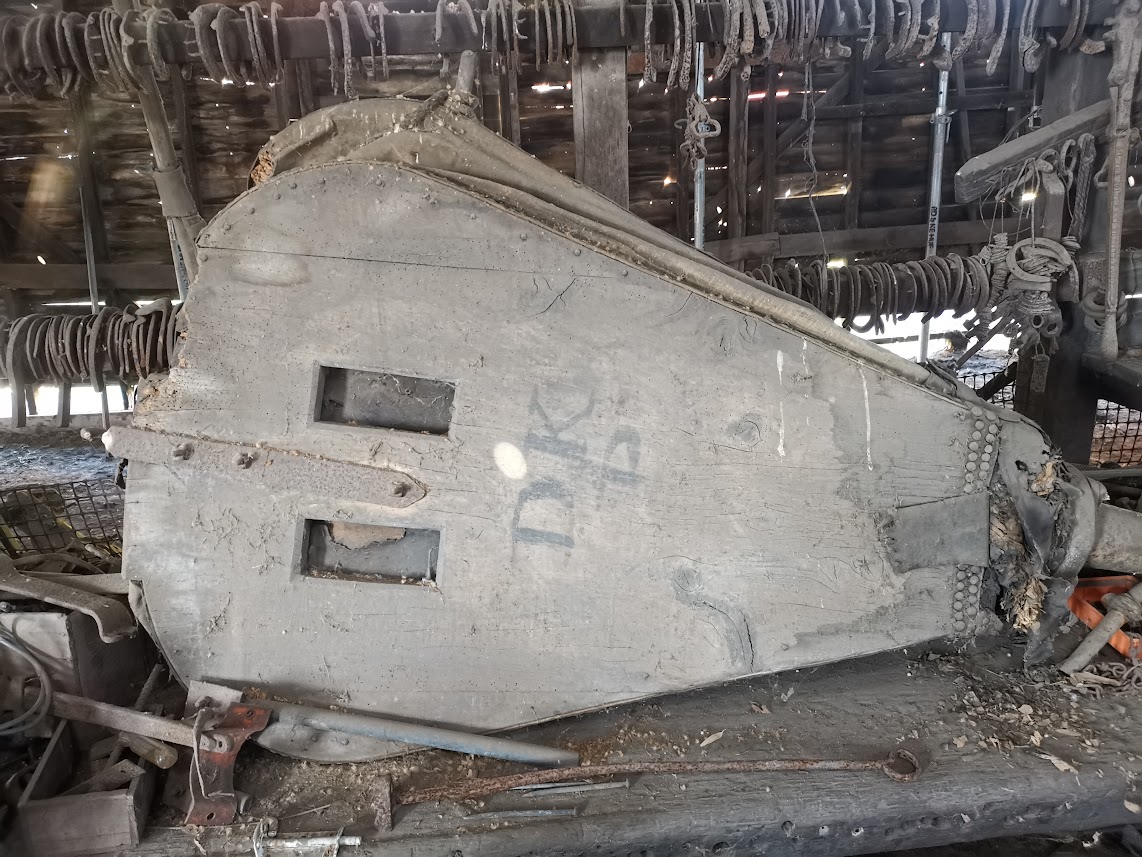The enormous Bellows of Daniel Kane which can still be seen today in the Matthew Cook Blacksmith Shop in the main street of Coleraine. John Kane present co-owner photo taken 2023.