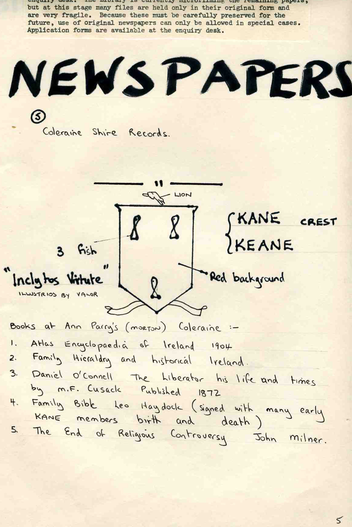 · Daniel Kane left Ireland in 1866. He brought with him a book on the life of Daniel O’Connell the lrish liberator