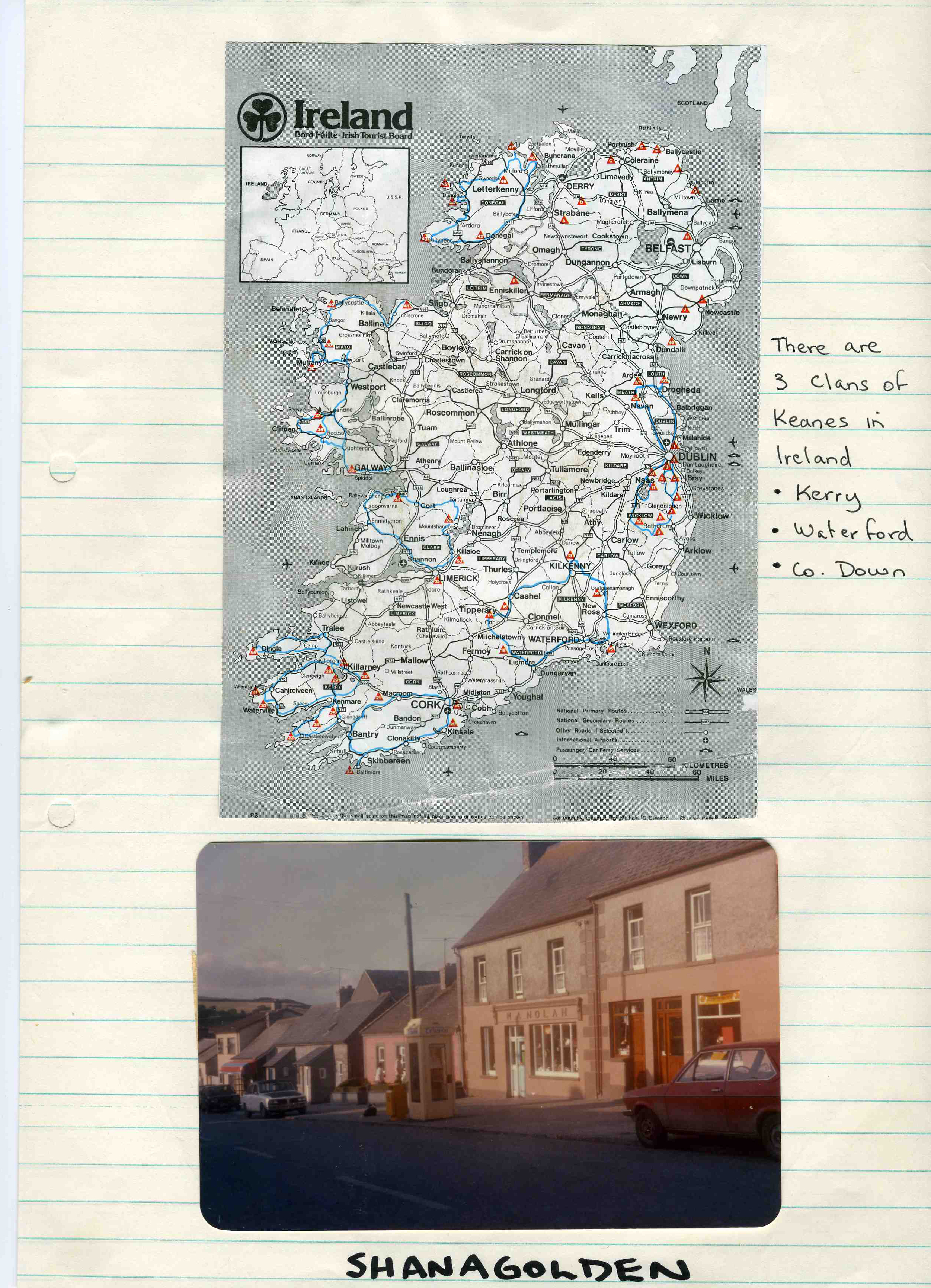 There are three clans of Keanes in Ireland: Kerry, Waterford and County Down. |