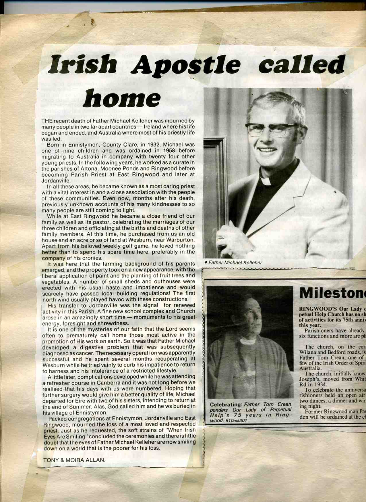 | Favourite priests at Ringwood: Fr. Scarborough, Fr. Morgan, Fr. Kellahagh, the Irish Priests - Holy Ghost fathers, Fr. Gogan | |