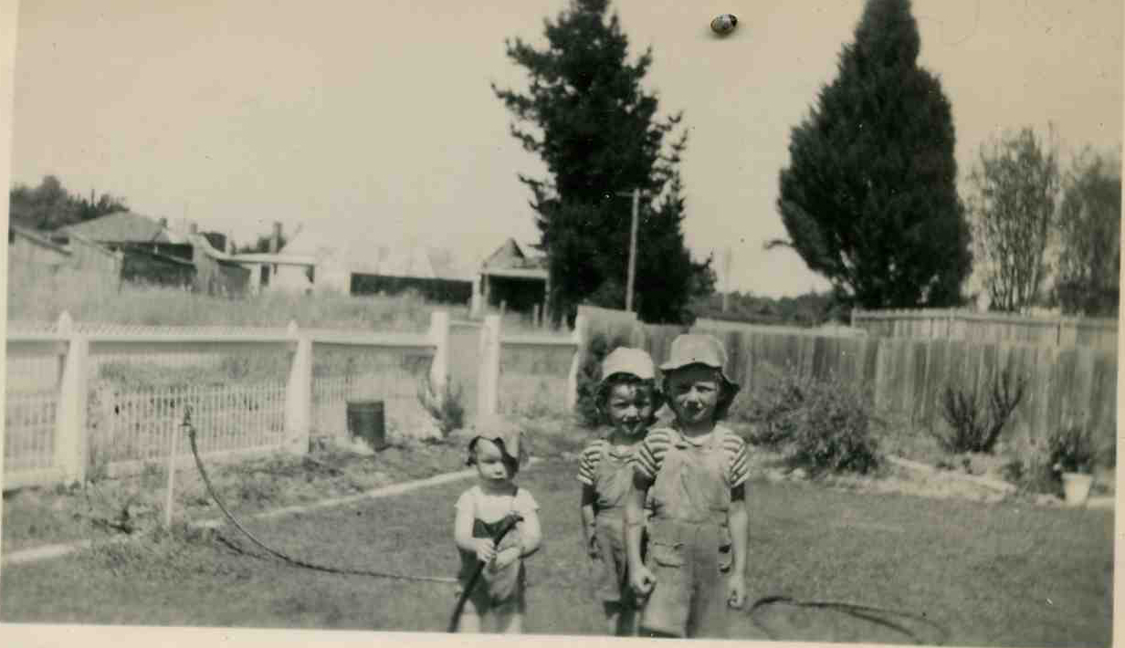 | John was very shy (can you believe it!!) so Mum sent him to start at the Kindergarten across the road from Daisy St. He hid behind the door. John lit the tree on fire at the back of our block and he came down and hid behind the chimney. | |