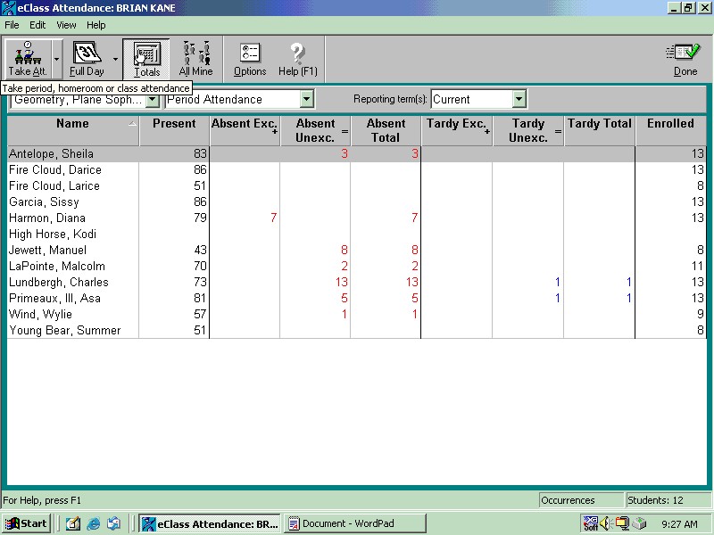 absentees are done on the computer and submitted to the office. The