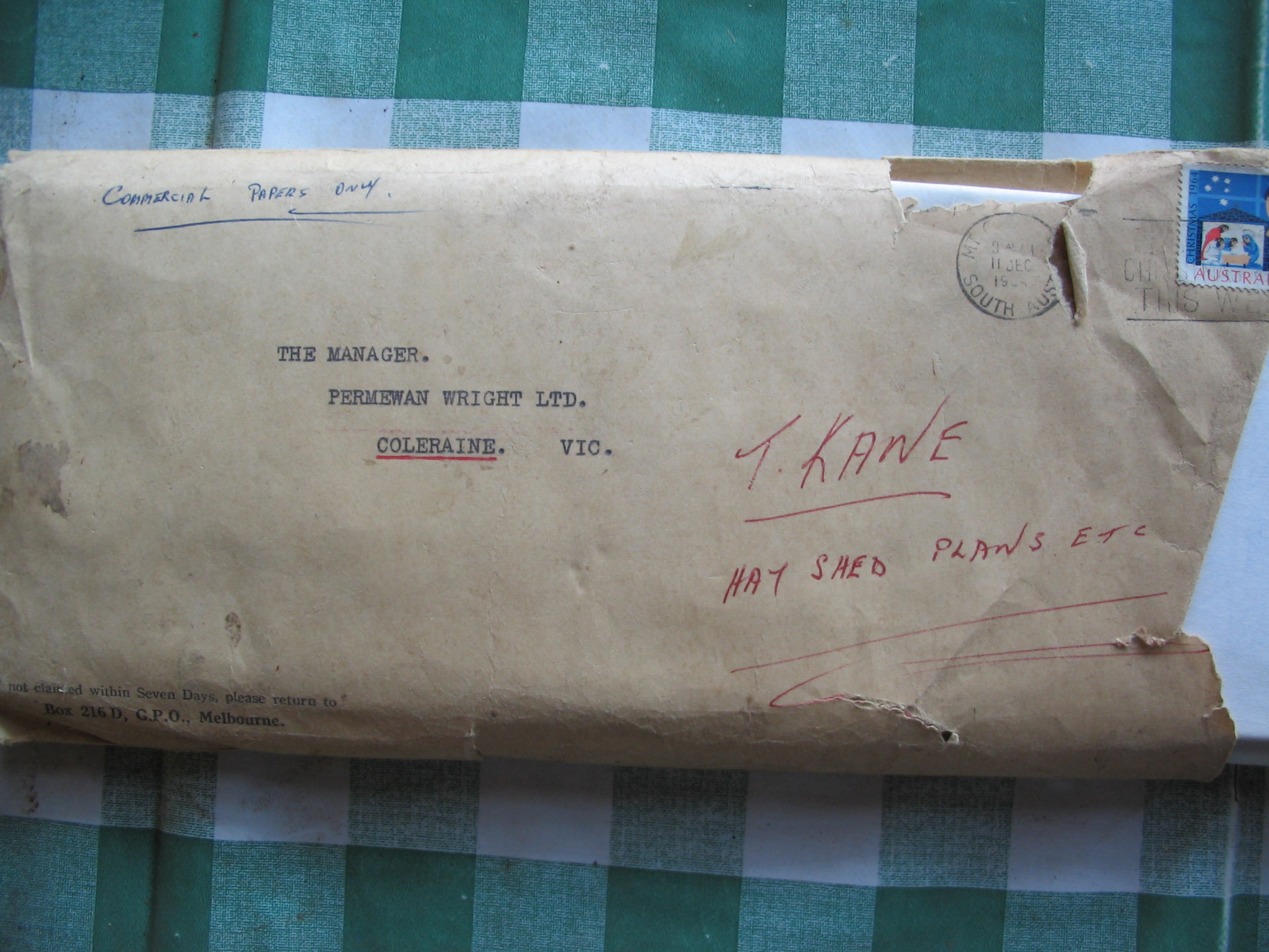 | MISC | Letter | lettuce | Bankbook 1929 | Woolshed plans | Woolshed plan envelope | |||