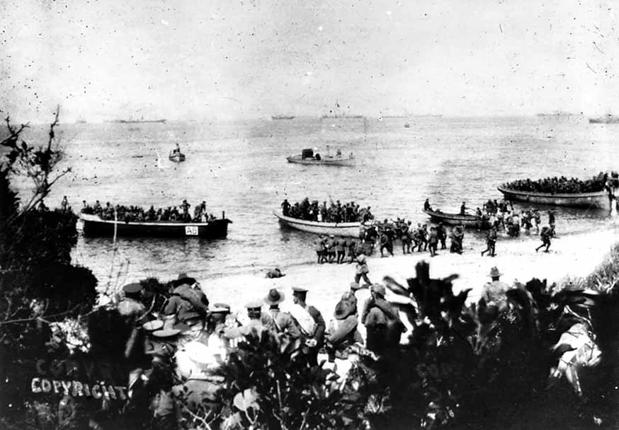 This was supported by a smaller force of 17,000 men from the Australian and New Zealand Army Corps (Anzacs) under General Sir William Birdwood. This force landed at what became known as Anzac cove, a mile north of their intended destination and surrounded by deep cliffs.