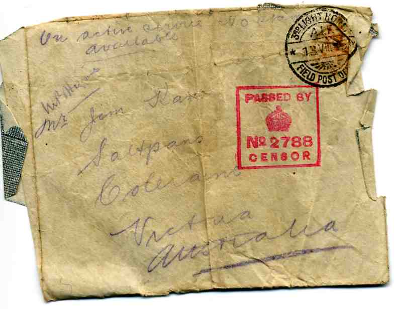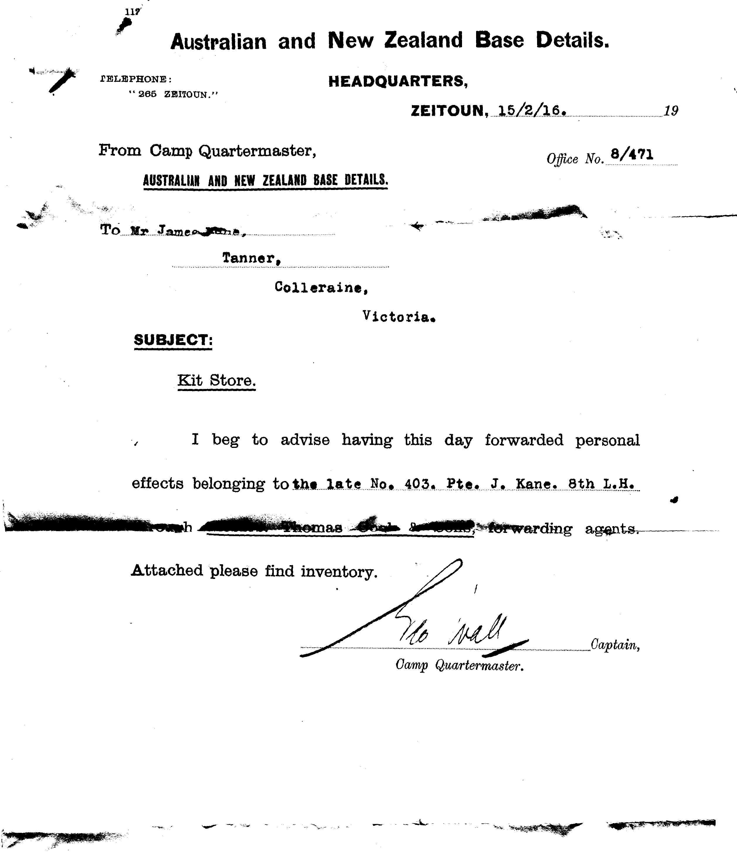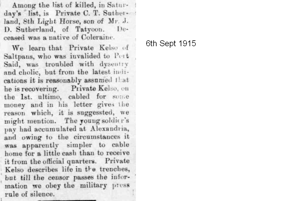 (John Kane was in Egypt in April and sailed for Gallipoli around the same time in May)