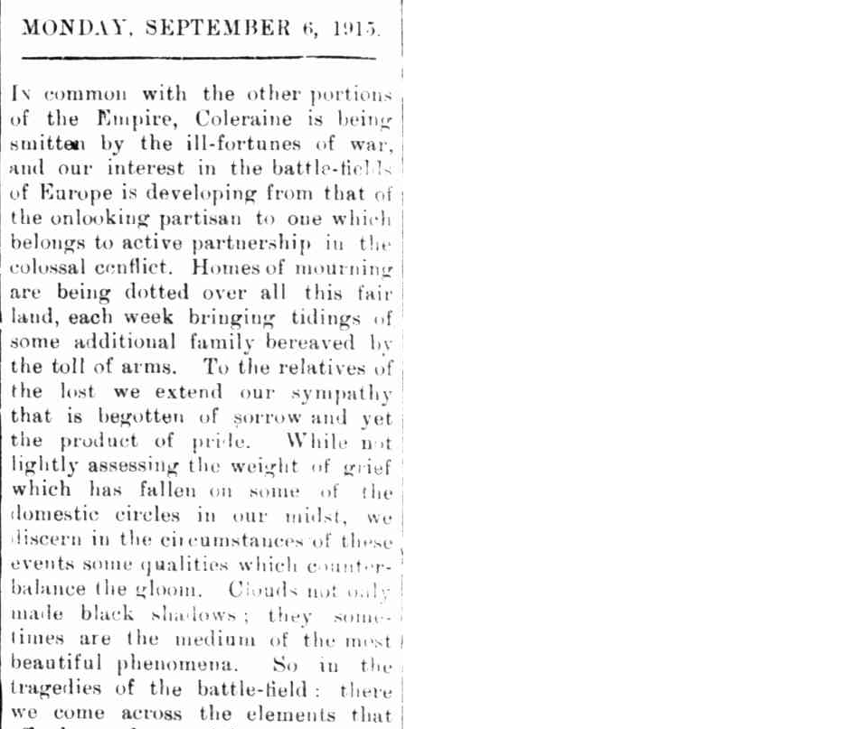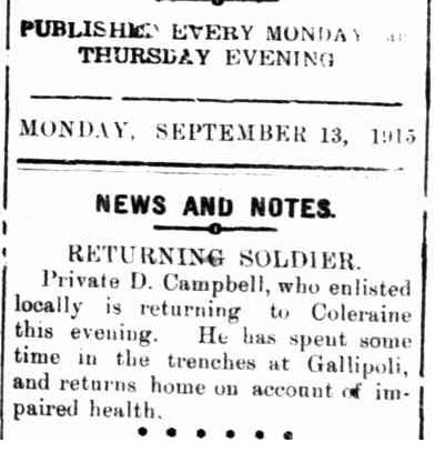 Coleraine soldiers remembered on a disastrous day - 7 th August 1915