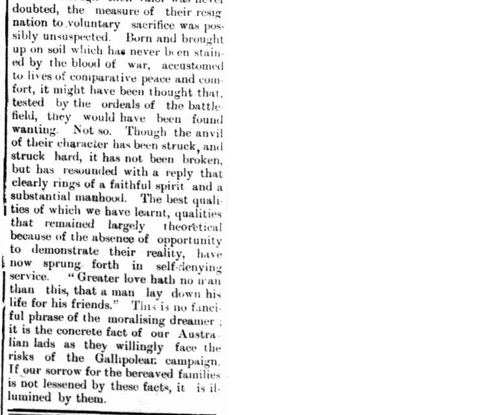 Here is another explanation of WHY Australian troops signed up for the War and the subsequent consequences: |