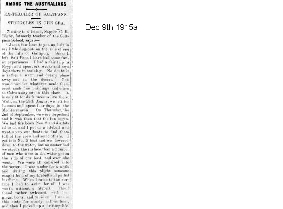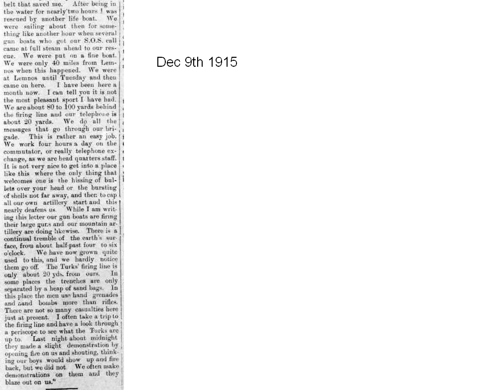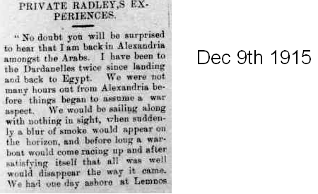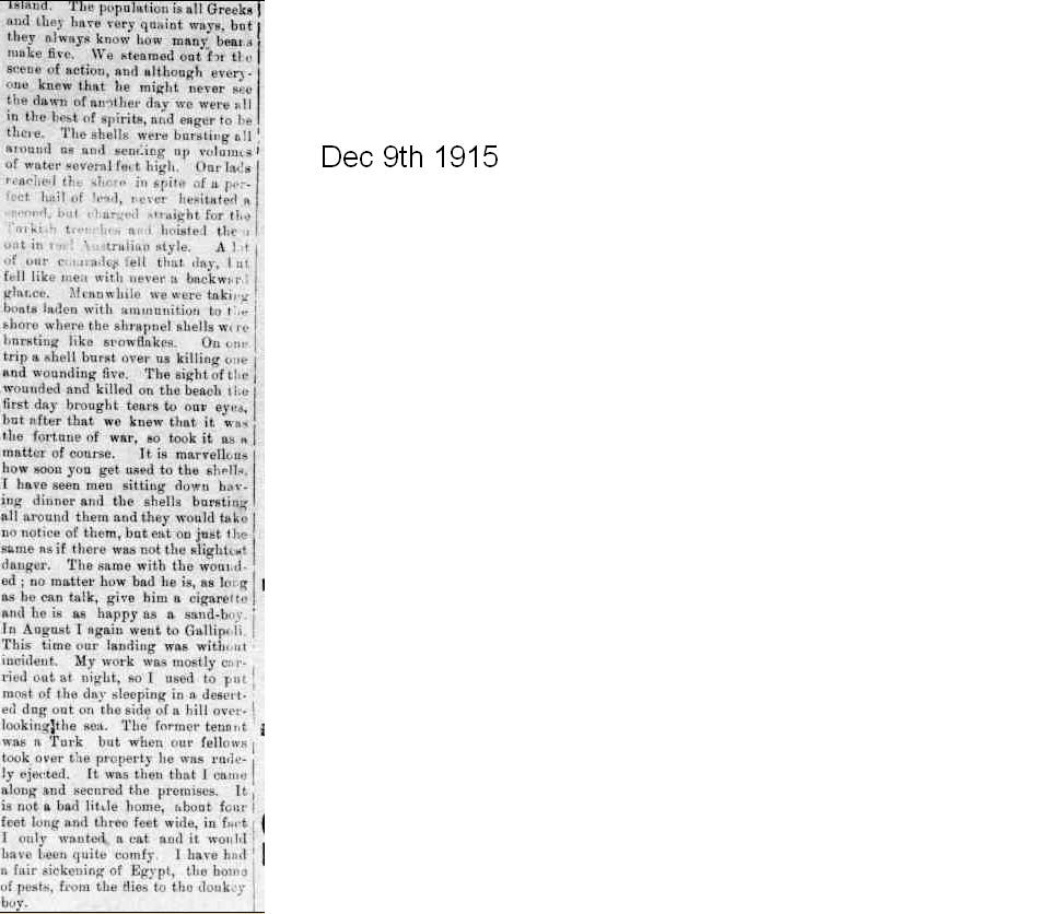 “After training in Egypt on May 16th 1915 sailed for the front. ‘We were all jammed in like sardines in a tin but we were of good cheer for we were off to help our brave comrades.
