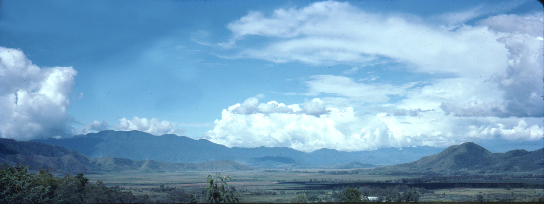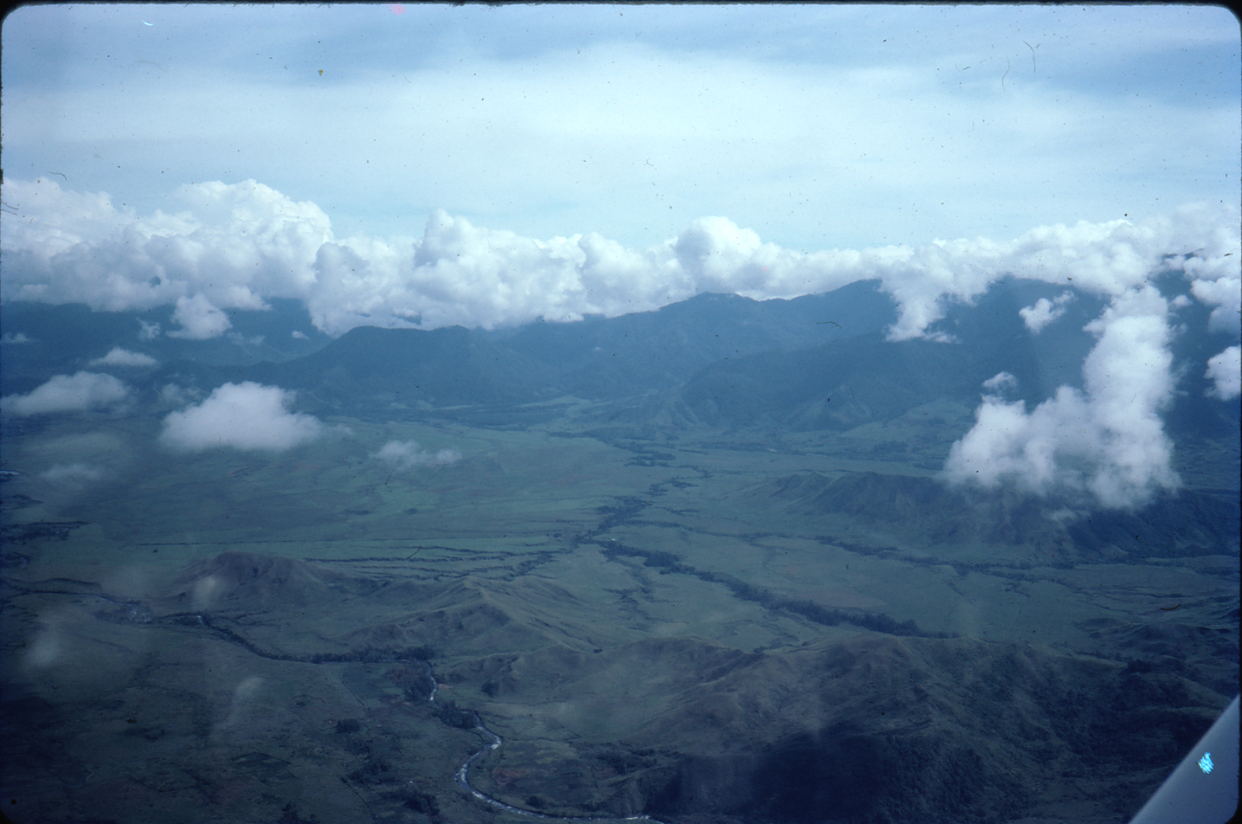 Quite soon, we were on the final part of our journey. Air crashes have been frequent in this part of the world and by just looking out the window you could understand why. We were surrounded by towering mountains on all sides and I hoped that the weather would not close in. The vegetation was a darker shade of green than I had expected and the rugged jungle terrain seemed impenetrable. By the time we came closer to Hagen the pilot suddenly dipped the wings of the aircraft at an angle so steeply that it prompted me to grasp my seat firmly. We then descended in a series of corkscrew circles heading for the Waghi valley which was only discovered by the Leah brothers as recently as 1935. At that time they were amazed to find over 100 000 tribal people living an agricultural existence.