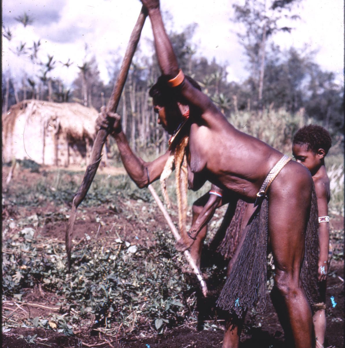 We were relieved when the aeroplane made a safe landing and we taxied to the tiny terminal with the solitary sign which read - ‘Welcome to Mt. Hagen Airport’. There was an instant feeling that we had been put back into an ancient time zone. Large family groups were quietly squatting down on the ground chewing betel nut and sugar cane. We were met by a tall, balding, confident but friendly priest with an American accent. He extended his hand in friendship. “Welcome aboard” was his initial greeting, and it wasn’t long before we threw our luggage in the back of the twin cab blue coaster truck and we were on our way. The locals were short but stocky individuals conditioned no doubt over the generations by climbing those enormous mountains. They had tight, fuzzy curly hair and were certainly healthy strong individuals. The women wore colourful tropical dresses obtained from the Chinese stores in town, while most of the males wore nothing but matted string mesh which hung loosely from a belt in the front and their behinds were covered with a term we would find crude, referred to in pigeon as ‘arse grass’. As we travelled into town it was quite incongruous to see some people from this unique culture, holding umbrellas above their heads and wearing gum boots.
